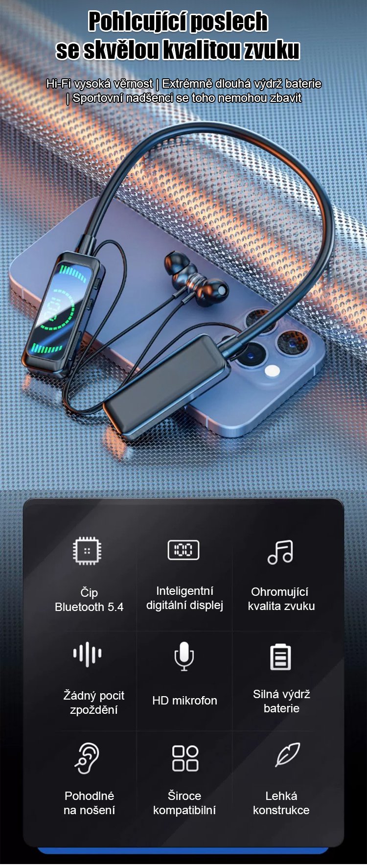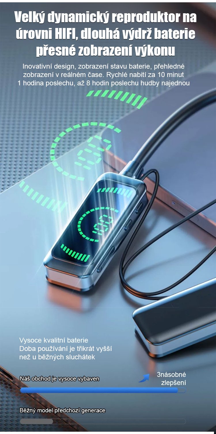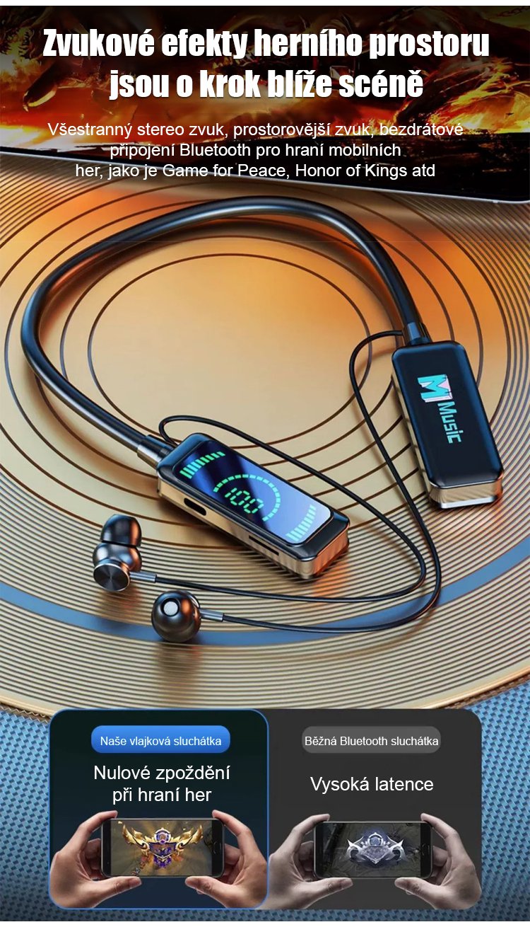 Bezdrátová bluetooth sluchátka na krk pro karaoke.